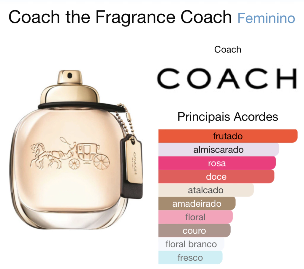 Coach é um perfume feminino floral frutado. Inspirado na energia espontânea e no estilo do centro da cidade de Nova York, uma fragrância cheia de contrastes.