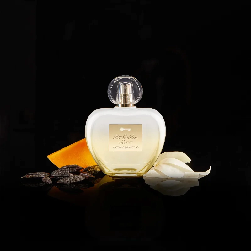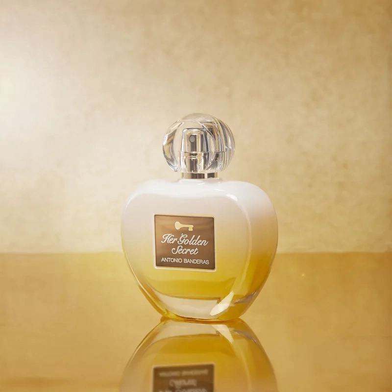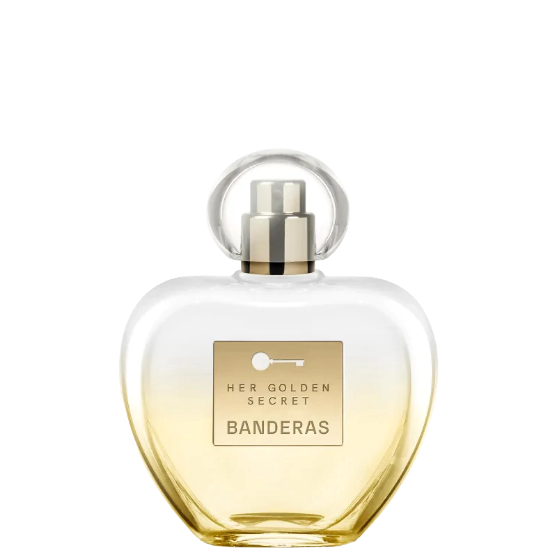 Her Golden Secret, de Banderas, possui notas de saída que destacam sua feminilidade com uma nota de coração floral que mescla delicadamente gardênia, flor de laranja e groselha preta. No fundo, as madeiras, o patchuli e a baunilha oferecem o caráter único de uma sedutora irresistível.