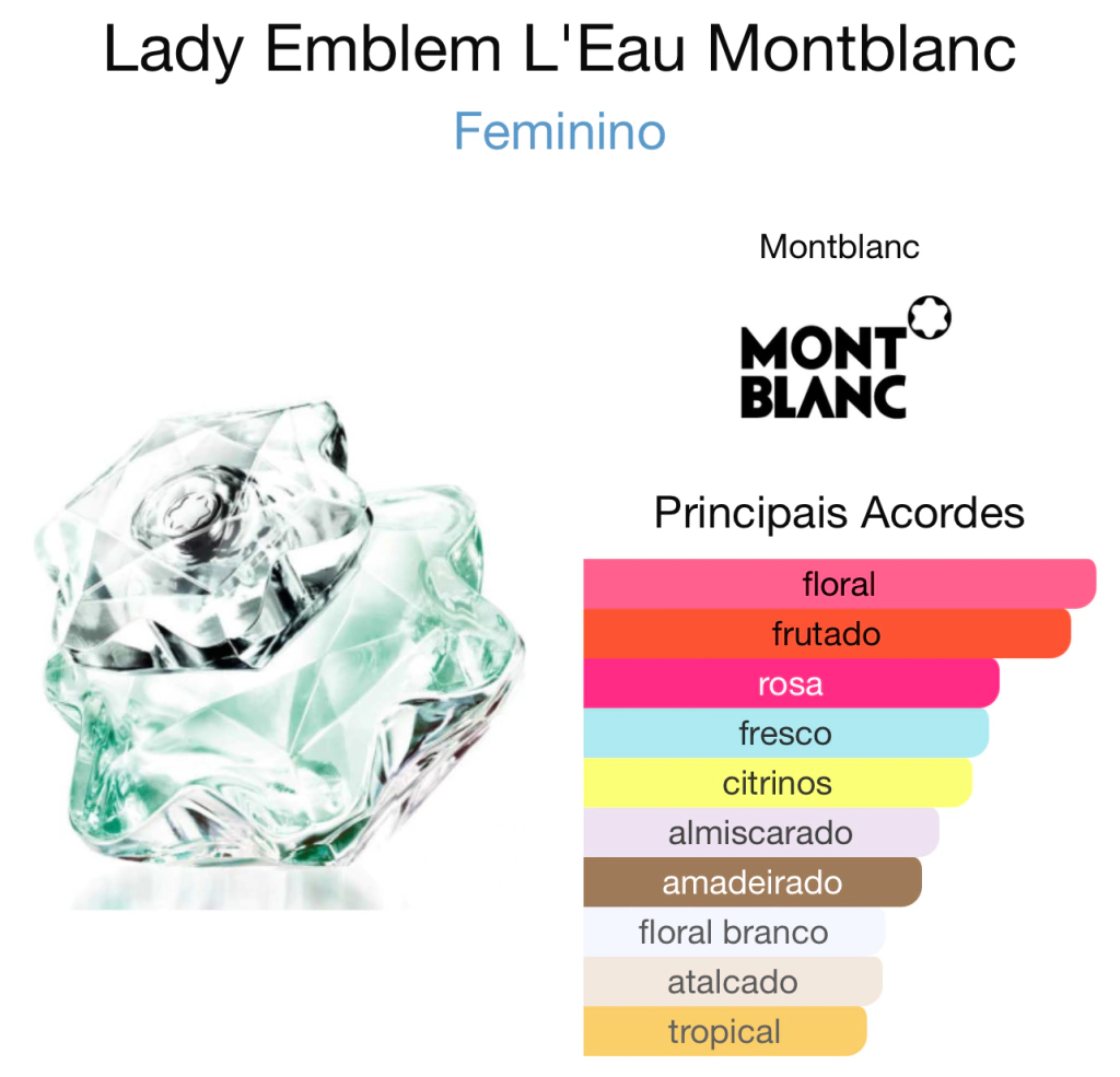 Este passeio olfativo requintado e sinuoso começa com acentos frutados: folha de mandarim e as notas aquáticas de pêssego branco e lichia exótica. Nas notas do meio, um voluptuoso buquê de rosas, o cheiro sempre presente que guia a história de sucesso de Lady Emblem, aumenta a luminosidade da magnólia. Sonia Constant essencialmente capturou o aspecto verde, mais fresco da rosa para enfatizar a leveza da composição. Os almíscares preciosos, o elegante cedro e o benzoin cremoso formam as notas de base. É uma história de uma água espumante, um floral-aquático lírico, para uma mulher tão delicada quanto forte.