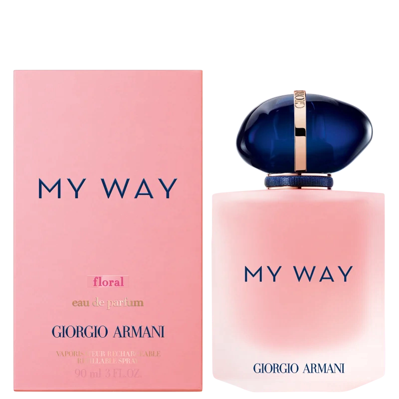 My Way Floral é um convite para uma jornada de autodescoberta, capturando a sensação de afirmação da vida de um primeiro encontro, com uma refrescante sensação de euforia que faz florescer quem o usa. Um buquê fresco, luminoso e florido realçado por cítricos brilhantes, encapsulado em um frasco de vidro fosco, cujo acabamento cria um visual velado, revelando o delicado suco rosa da fragrância. O perfume abre com notas picantes de tangerina verde e o brilho do enfleurage de flor de laranjeira em óleo de laranja. No coração, a tuberosa carnal é ampliada pela rica e suave delicadeza do óleo de Neroli. Na base da fragrância, a Vanilla Bourbon revela uma faceta envolvente quando ampliada com almíscares brancos.