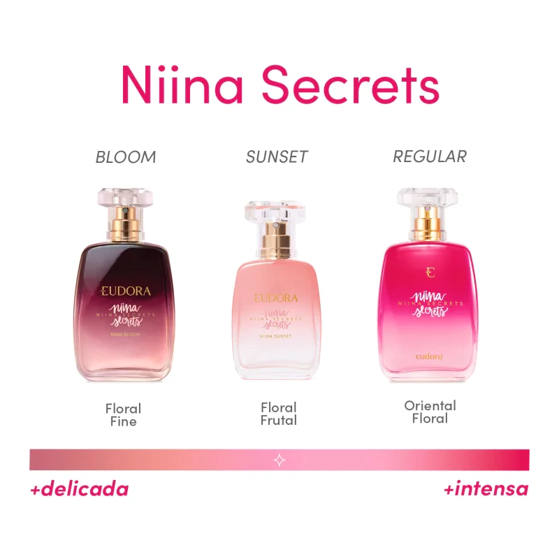 Feita por nós para todas nós, chegou para revolucionar seu mundo com beleza, tecnologia e inspiração. A união de um grande sonho com uma verdadeira parceria dos sonhos fez nossa primeira cocriação nascer de uma relação de confiança entre Niina, Eudora e você. A linha de maquiagem Niina Secrets Eudora carrega cuidados nos mínimos detalhes para destacar o seu melhor e revela que o segredo do protagonismo é acreditar de verdade. Use a #NiinaSecretsEudora e revele toda a sua personalidade!