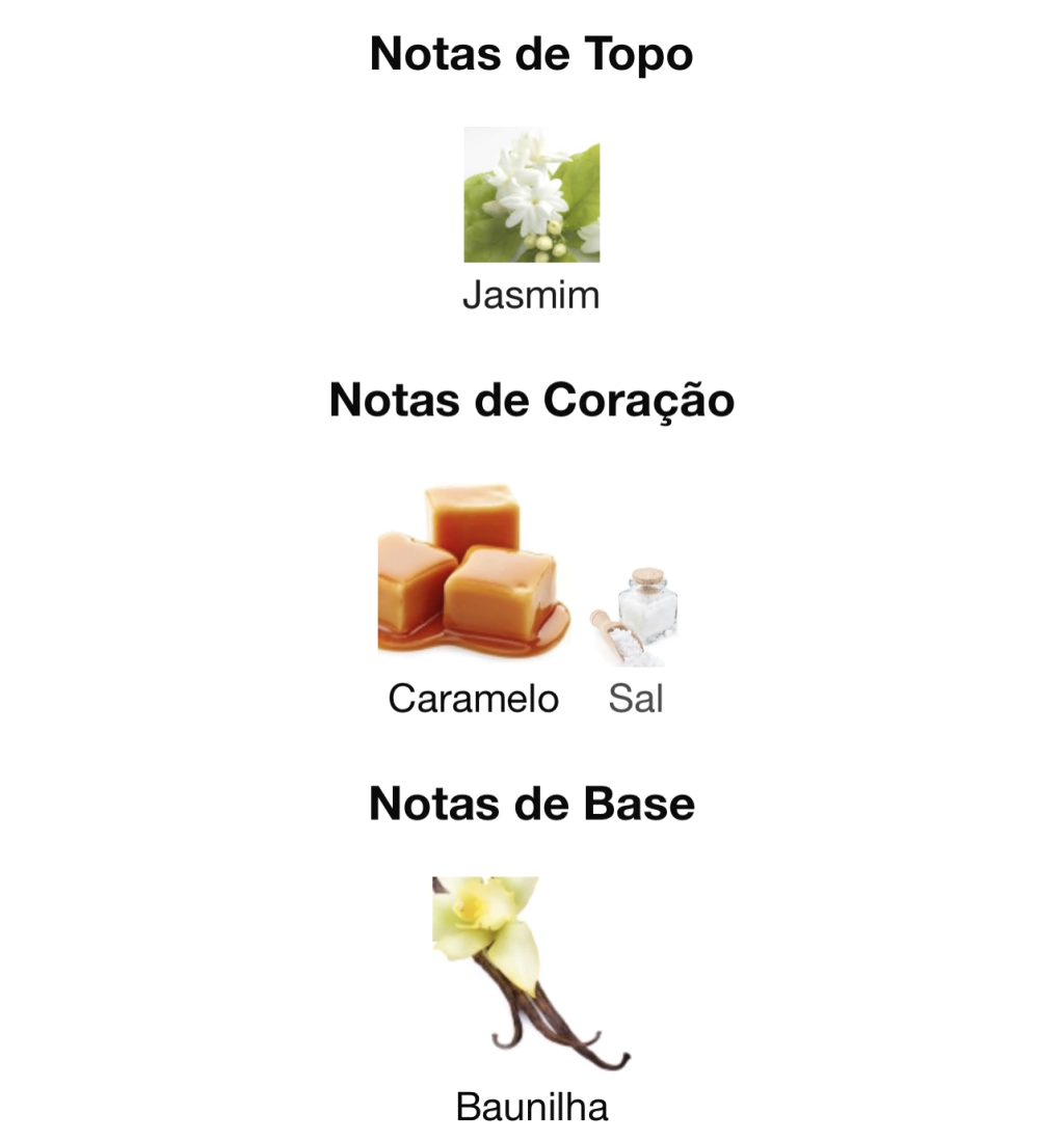 A fragrância é um Eau de Parfum intenso da família do amber floral ultra feminino e ousado que mistura notas de Jasmin, Caramelo salgado e Baunilha.