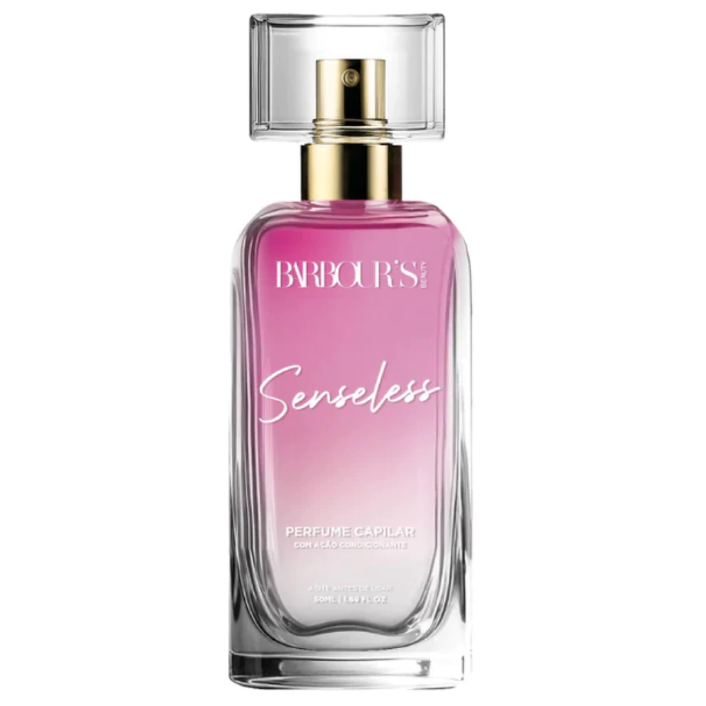Perfume de Cabelo Senseless: fragrância bifásica com proteção térmica, unindo pera, tangerina e jasmim para um toque suave e refrescante nos fios.