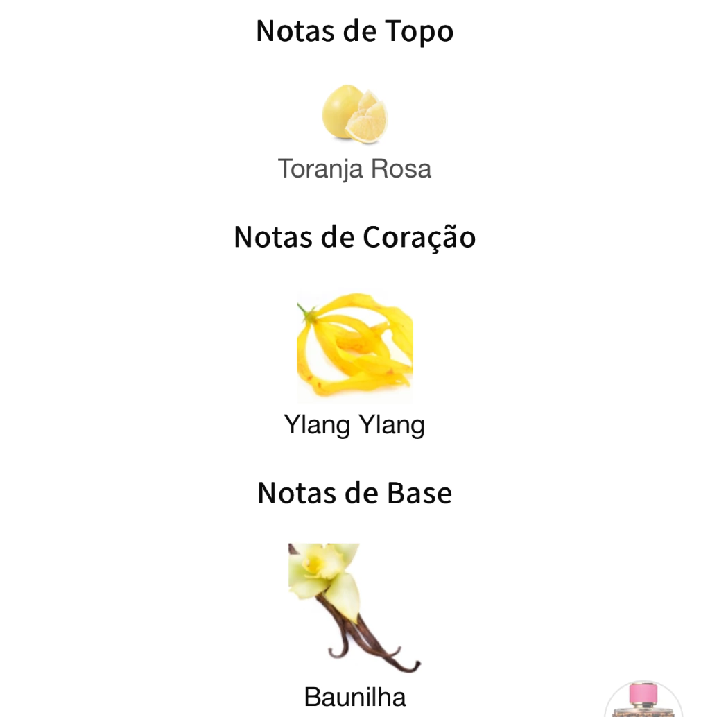 Principais ingredientes: Toranja Rosa, Ylang Ylang e Baunilha