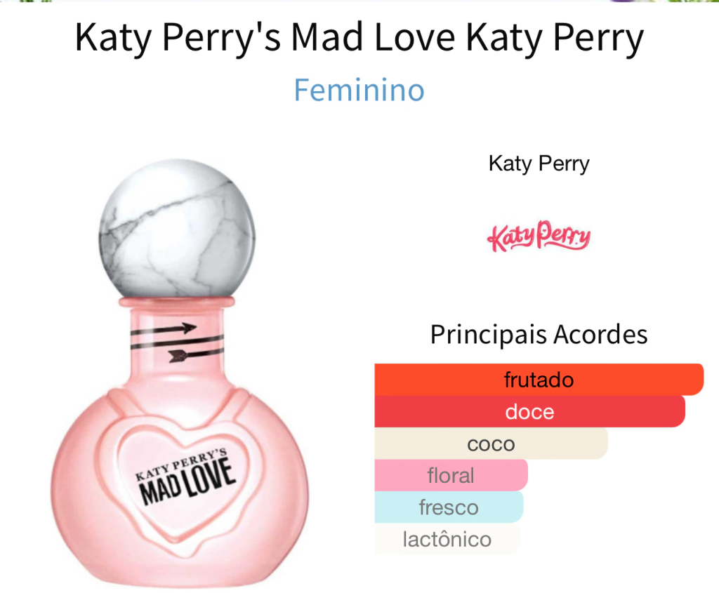 Perfume feminino floral oriental. Mad Love Katy Perry Eau de Parfum, uma fragrância que fará você se sentir como alguém da realeza.